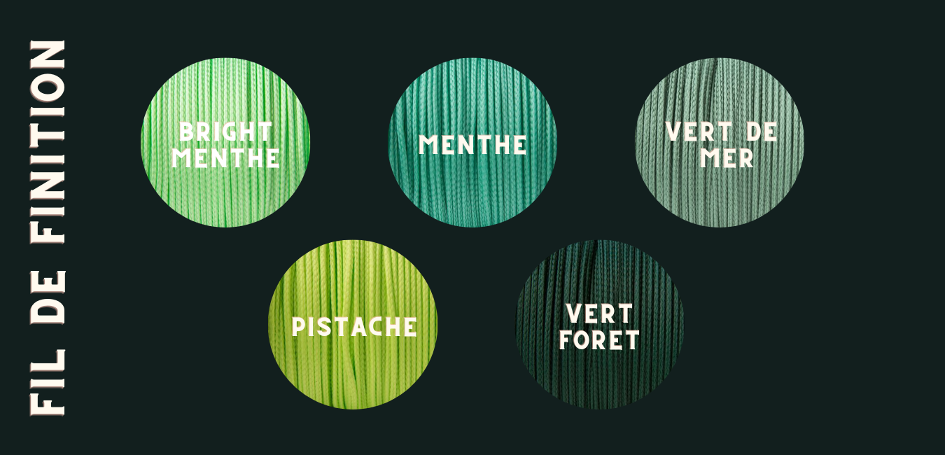 Personnalisable, vous pouvez choisir la couleur du fil de finition et de la couleurs de la bouclerie.